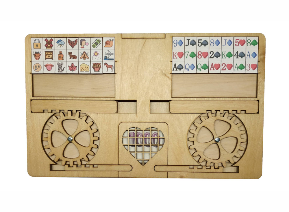 Do schránky pod srdcem pohodlně vložíte několik poskládaných bankovek nebo jiné drobné cennosti. Uzamknete oba zámky a obdarovaným nezbývá, než vyluštit obě šifry a zámky tím otevřít.