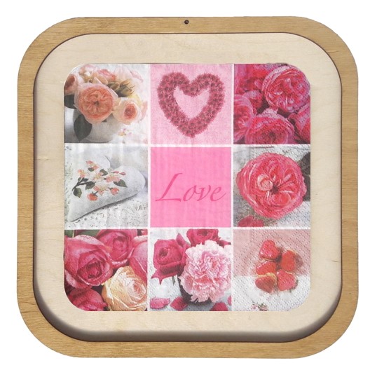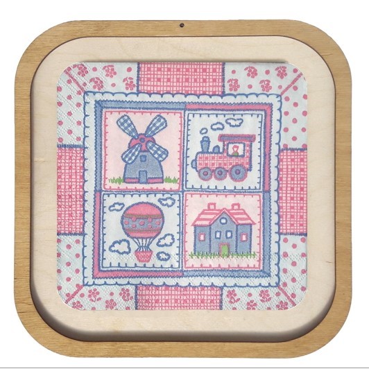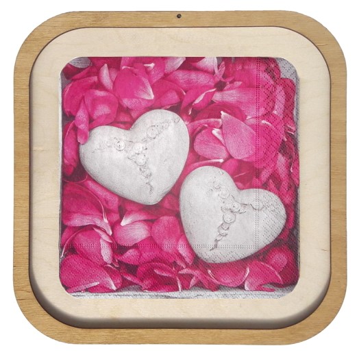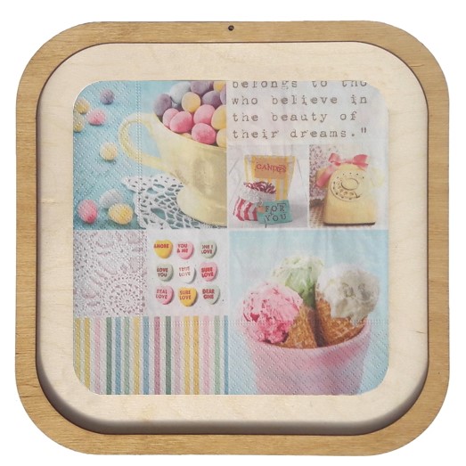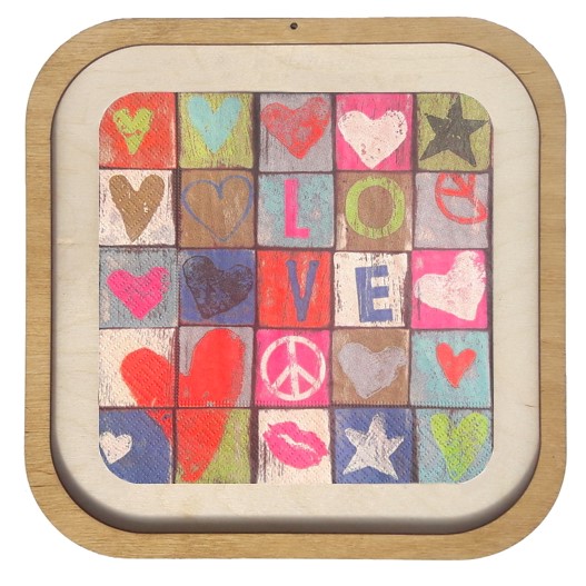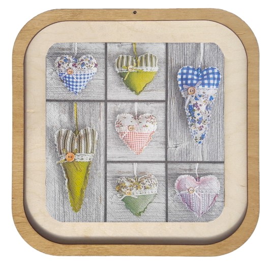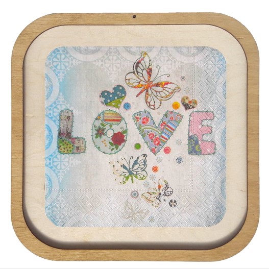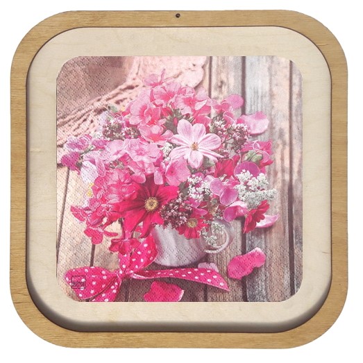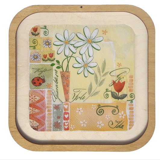 Dřevěný obrázek je vyrobený technikou decoupage. Motiv si můžete zvolit z naší nabídky podle příležitosti, ke které chcete peníze darovat – svatba, kolaudace, narození dítěte, narozeniny, příspěvek na cestování… Stačí jen napsat do poznámky v objednávce číslo vybraného motivu.
